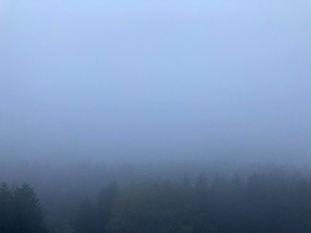 Blick aus dem Zimmer auf die Großbaustelle "Bobbahn". Leider hatten wir täglich Nebelschwaden.