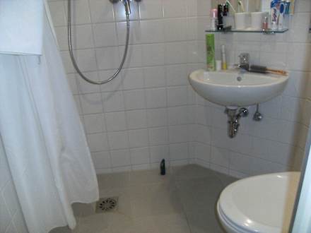 bei 4 qm kann keiner umfallen und wer die dusche benutzt, verhindert dass der Partner für ca. 1 stunde das wc nicht nutzen kann, weil das ganze bad schwimmt, fußbodenentwässerung ohne Aufkantung der duschtasse