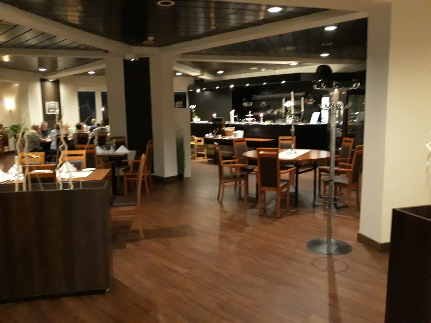 GastroRestaurant im obersten Stockwerk; tatsächlich traf ich keine Kellner - es erschien geschlagene 15 Minuten kein Angestellter, trotzdem ich an der Theke nach jemandem rief. An den zwei besetzten Tischen hatten sie nur ihre Getränke auf dem Tisch...