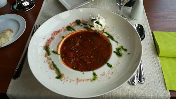 Tomatensuppe im Panoramarestaurant