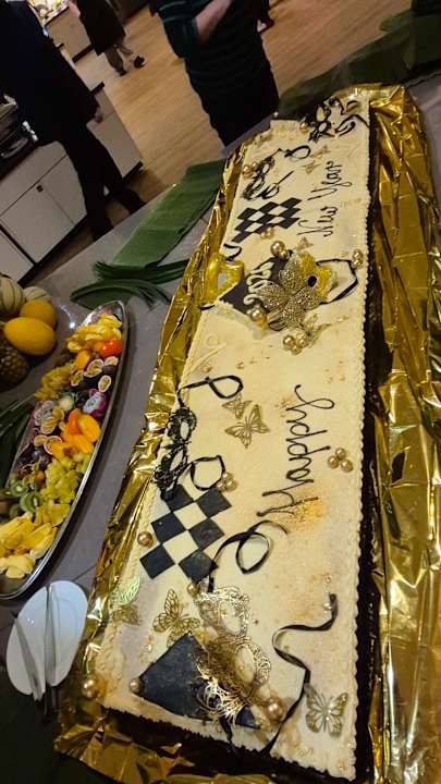Die Torte, angefertigt von einem Bäcker, auf dem Silvester Buffet