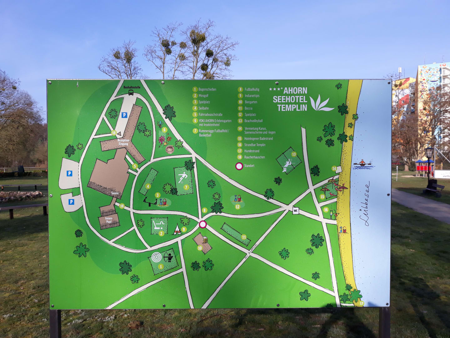 Lageplan zu Sport- und Spielplätzen sowie Strandbad