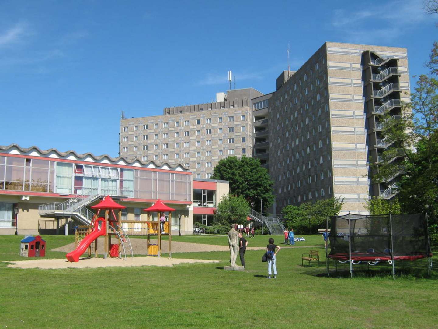 Hotel von der Gartenseite mit Spielplatz