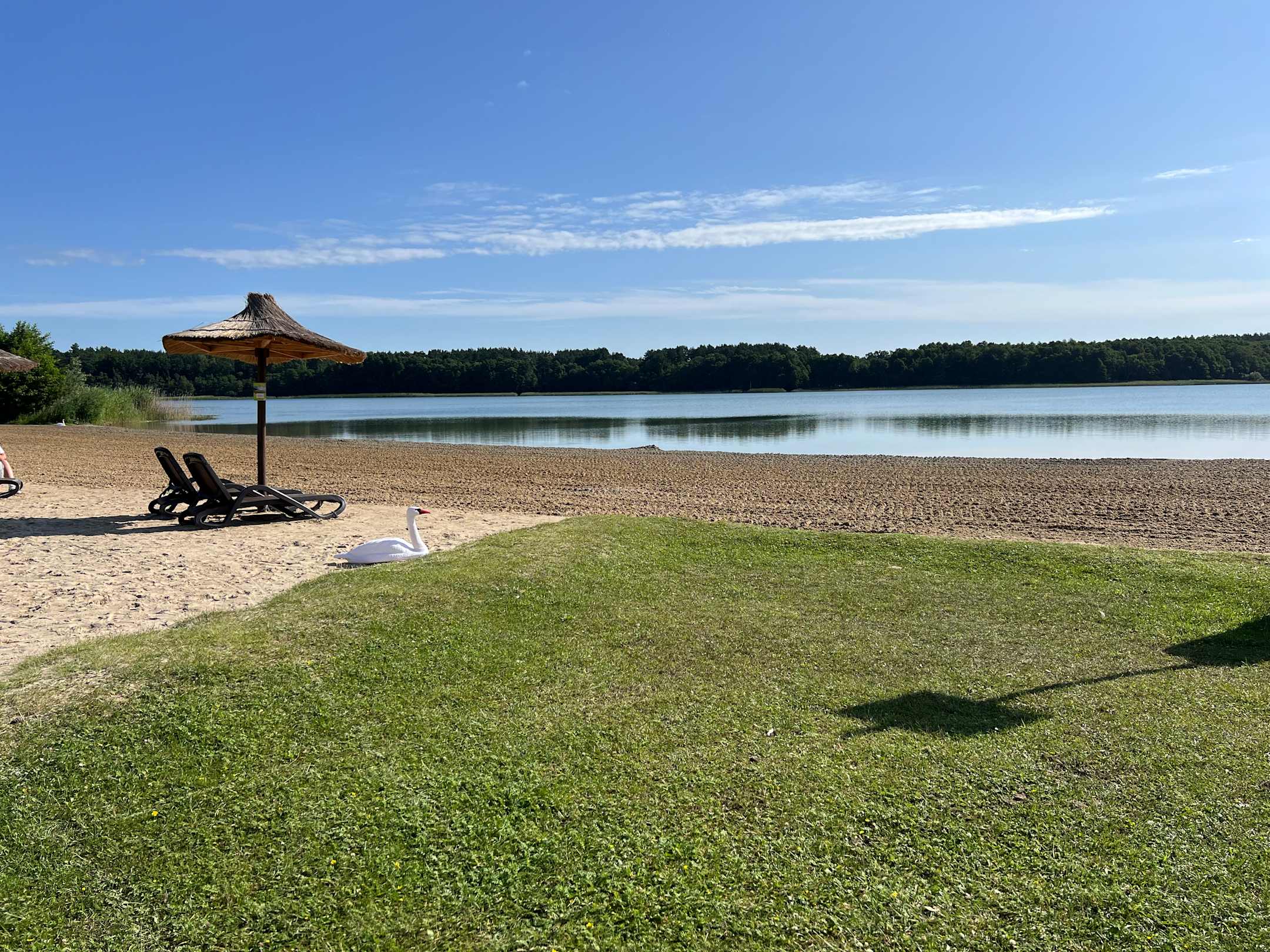 StrandJeden Tag wurde der Strand „umgegraben“, sah dadurch super gepflegt aus und war immer frei von Müll. (Schwan ist nicht echt)