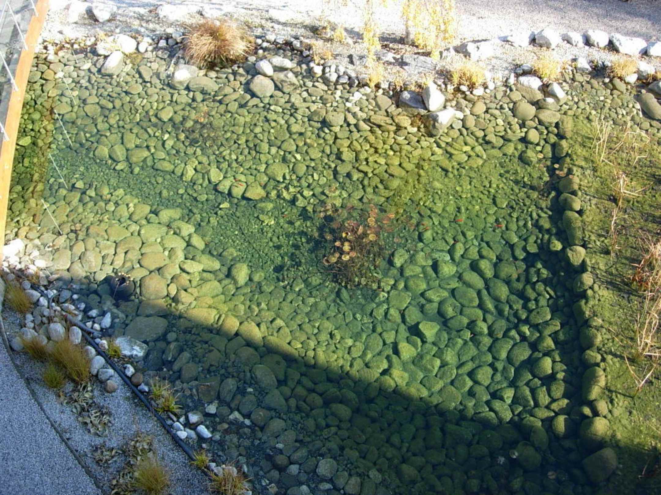 Blick in den Gartenteich vom Balkon