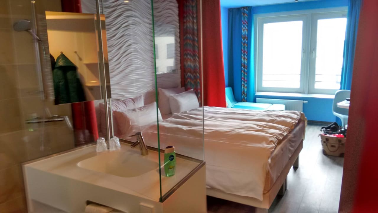Der Waschtisch, dahinter die Betten und Sitzecke