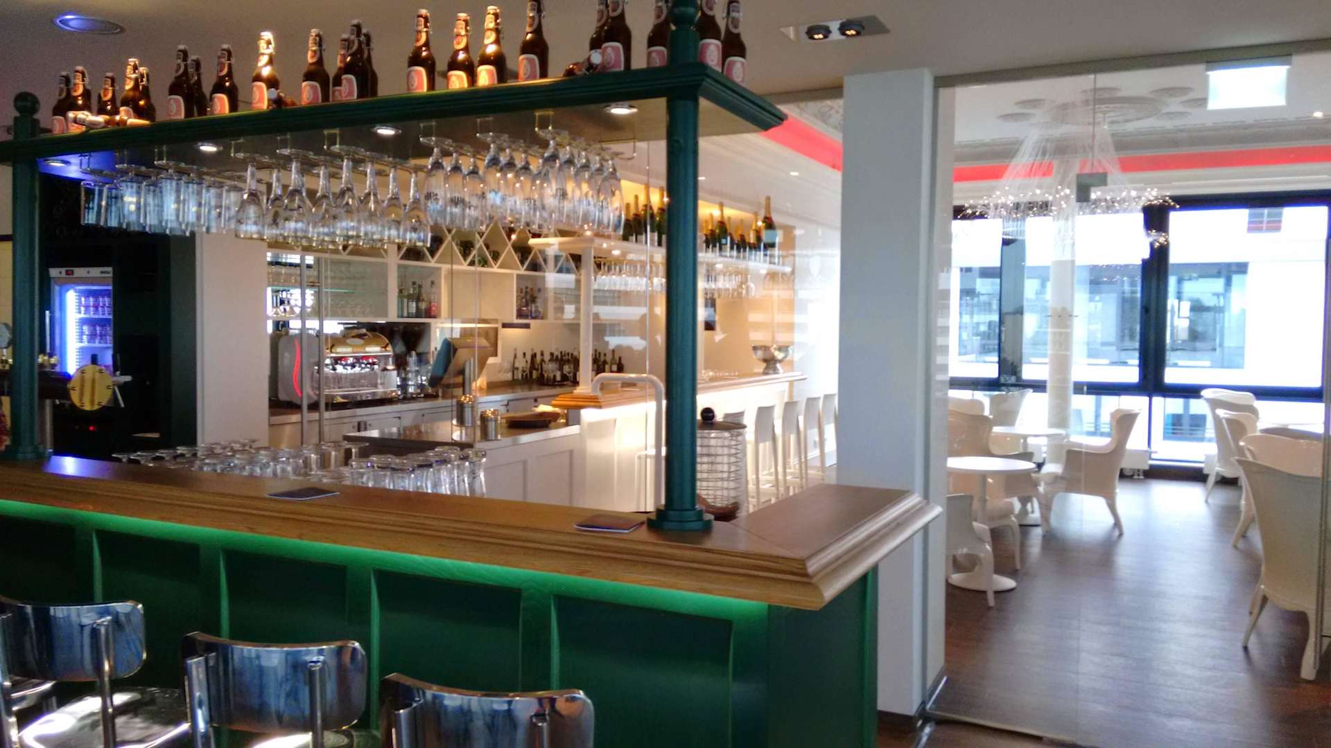 Restaurant/ Bar, dahinter der Außenbereich