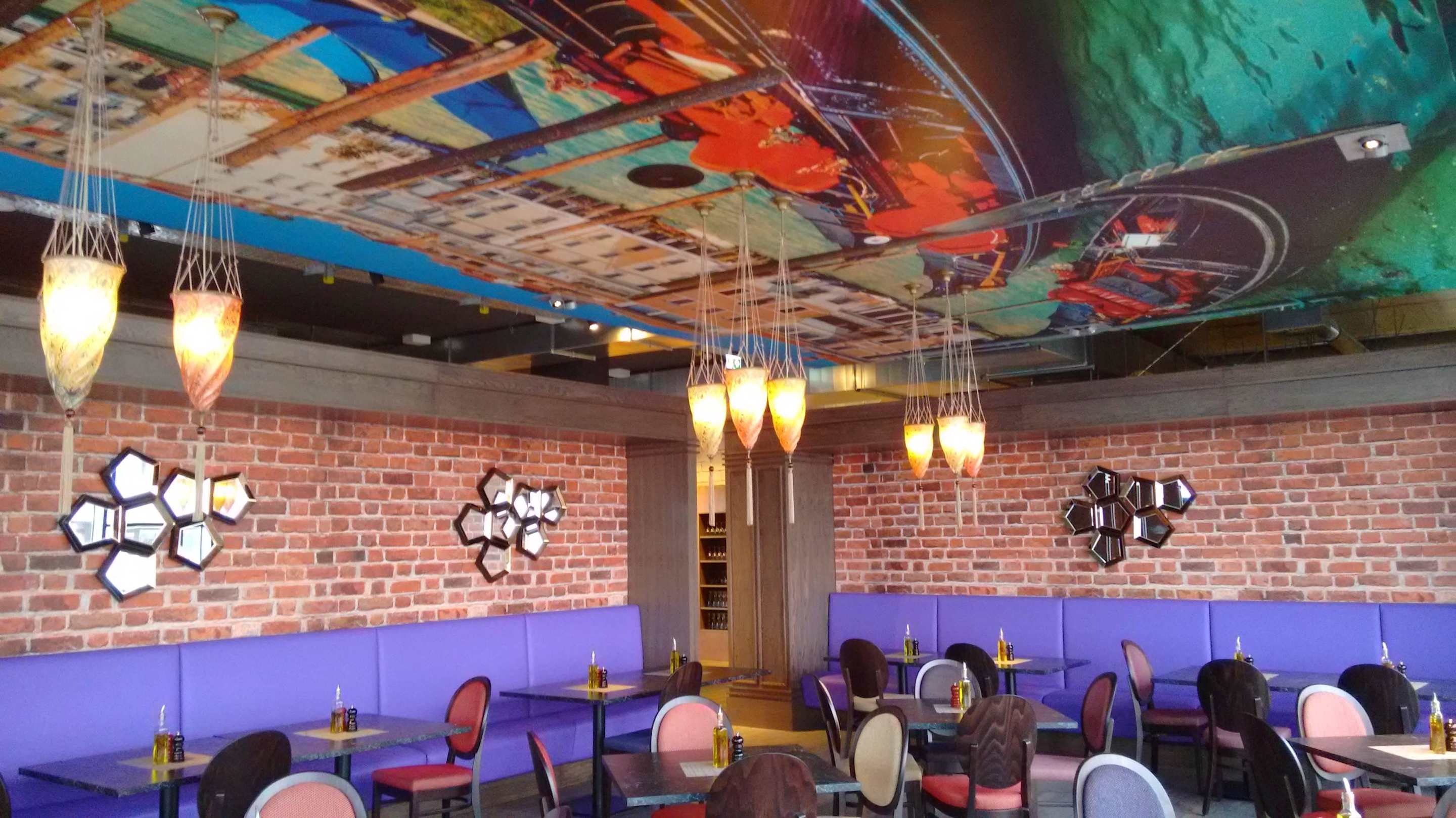 Speiseraum mit toller Wand und Deckengestaltung