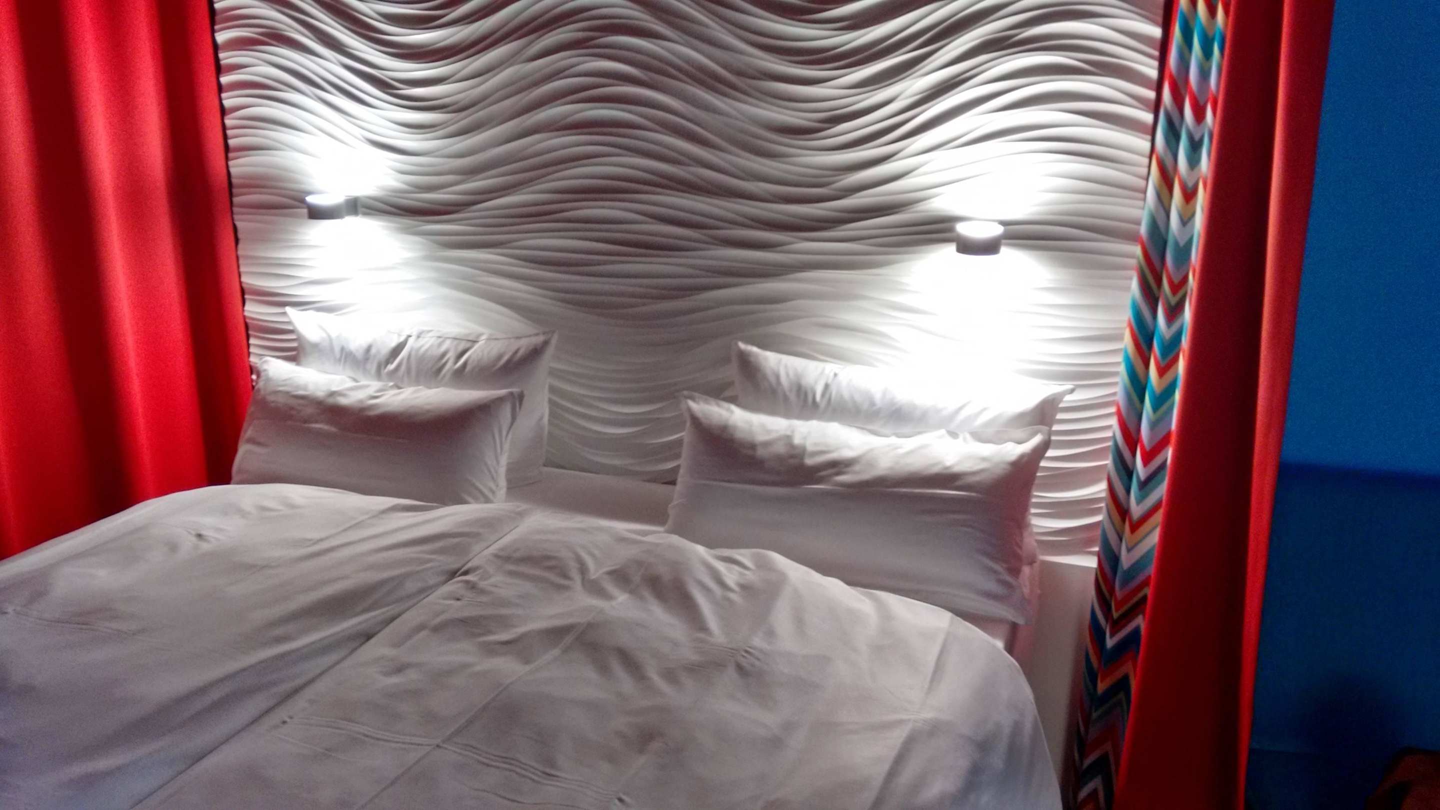 Schick gestaltete Betten-Rückwand mit Lampen