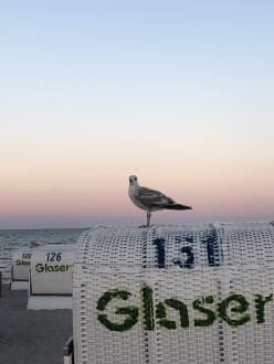 Strand ist nicht mal eine Minute entfernt, mit schönen Strandkörben.