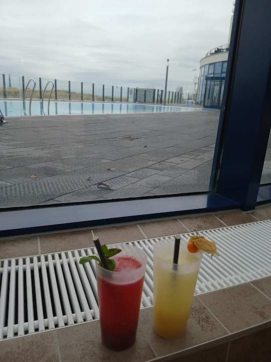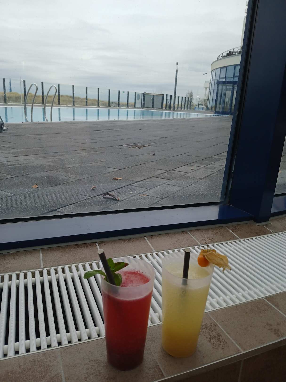 Im Schwimmbad, Blick nach draussen verschont mit Cocktails