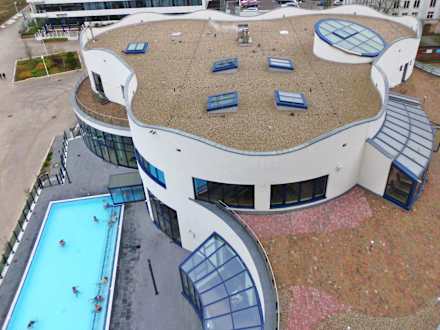 Blick auf Badewelt und Außenpool