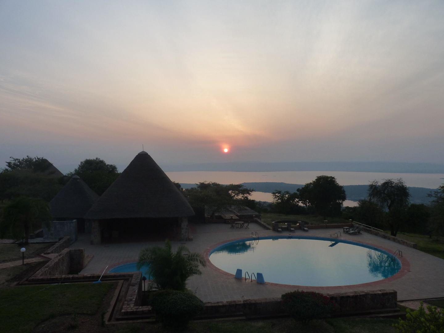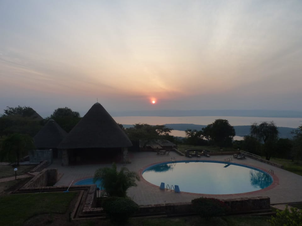 Sonnenaufgang mit Blick zum Pool
