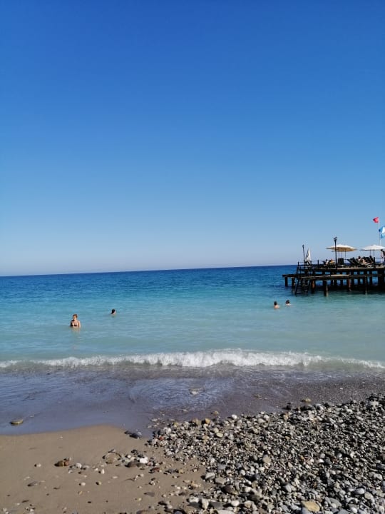 Etwas steinig, aber mit Badeschuhe oder über den Steg geht es doch recht einfach