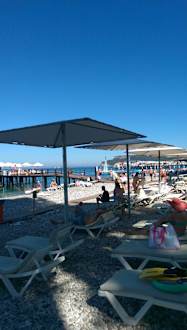 Liegen und Schirme am Strand