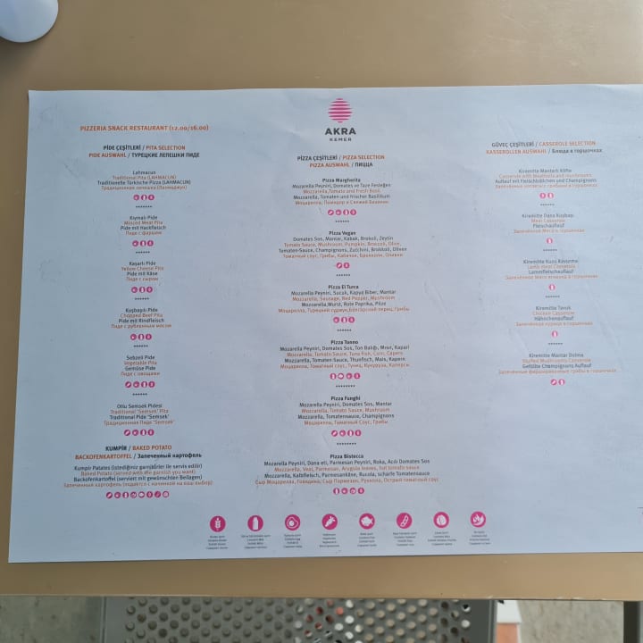 Pizzeria Snack Bar Speisekarte