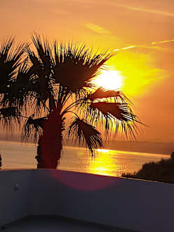 Schöner Sonnenuntergang am Hotel