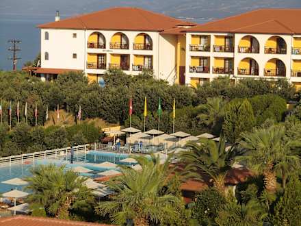 Ausblick auf Anlage und Meer Akrathos Beach Hotel