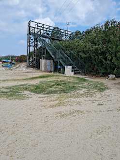Die Eisenbrücke mit ihren 60 Stufen über die Hauptstraße als Zugang zum Strand