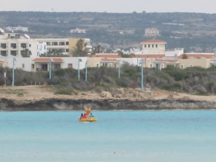 Blick auf die Hotelanlage vom Nissi Beach aus