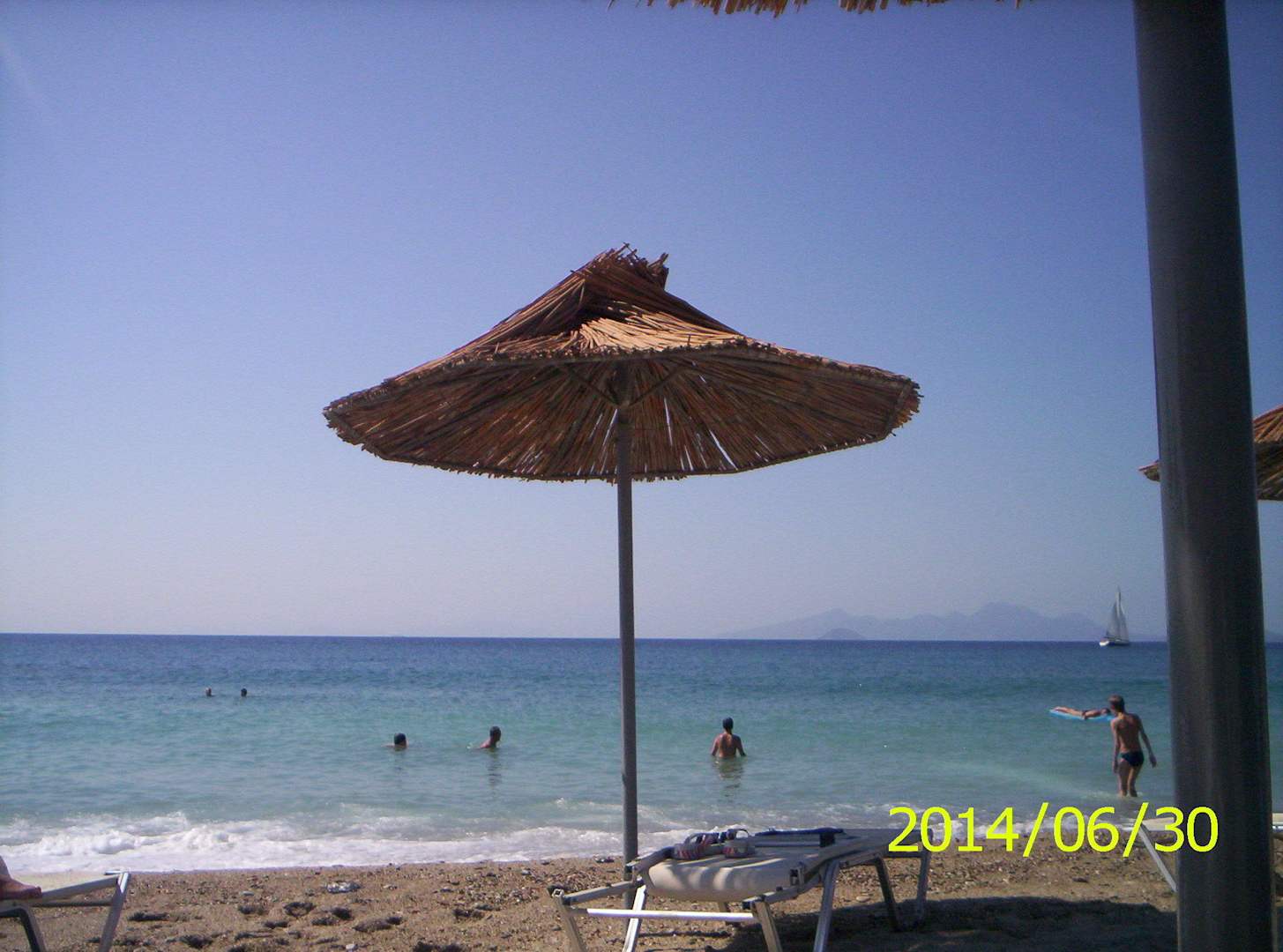 Der Kiesstrand mit Sonnenschirmen