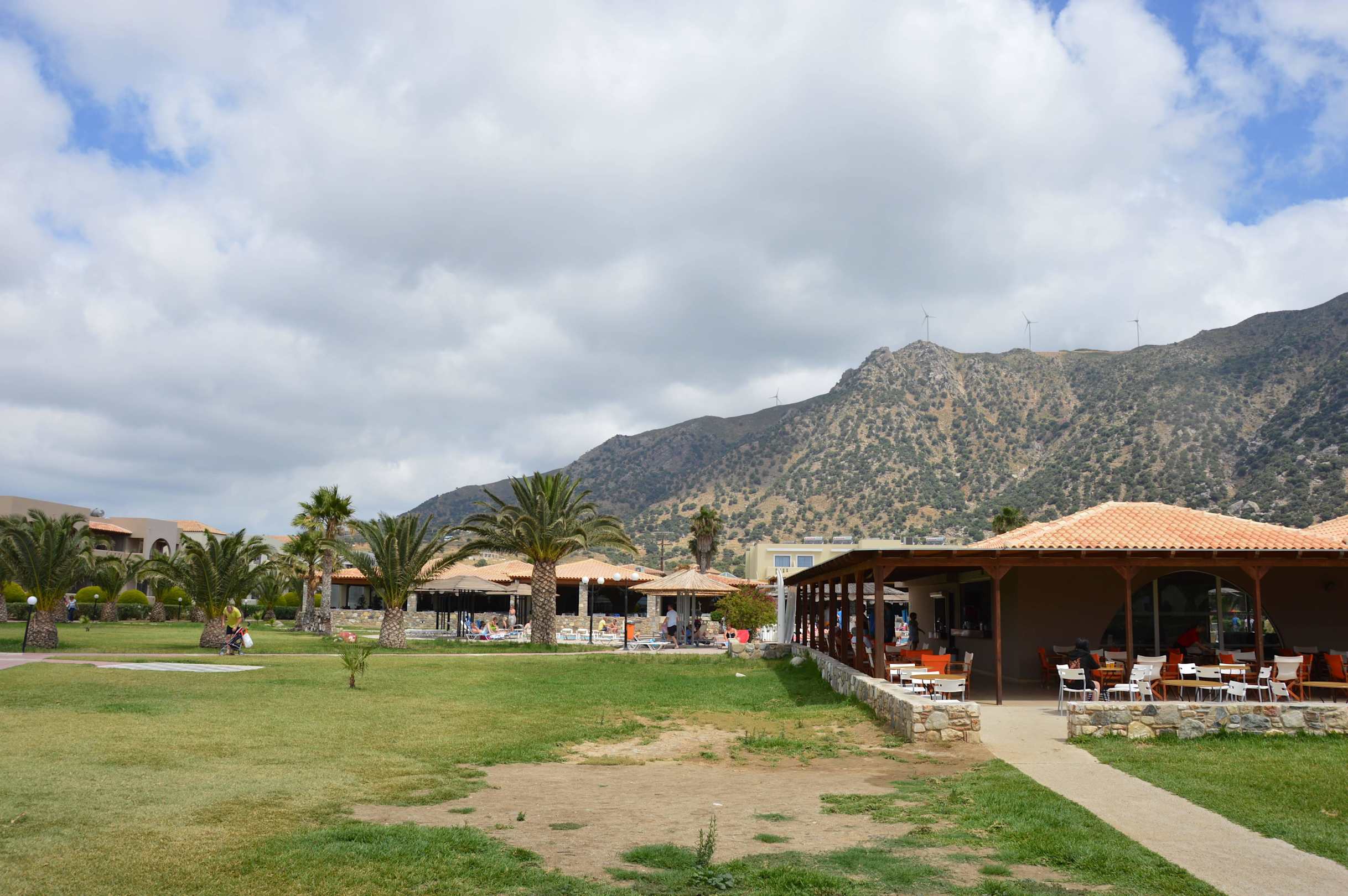 Widok na mini klub i restaurację a w tle góry :)