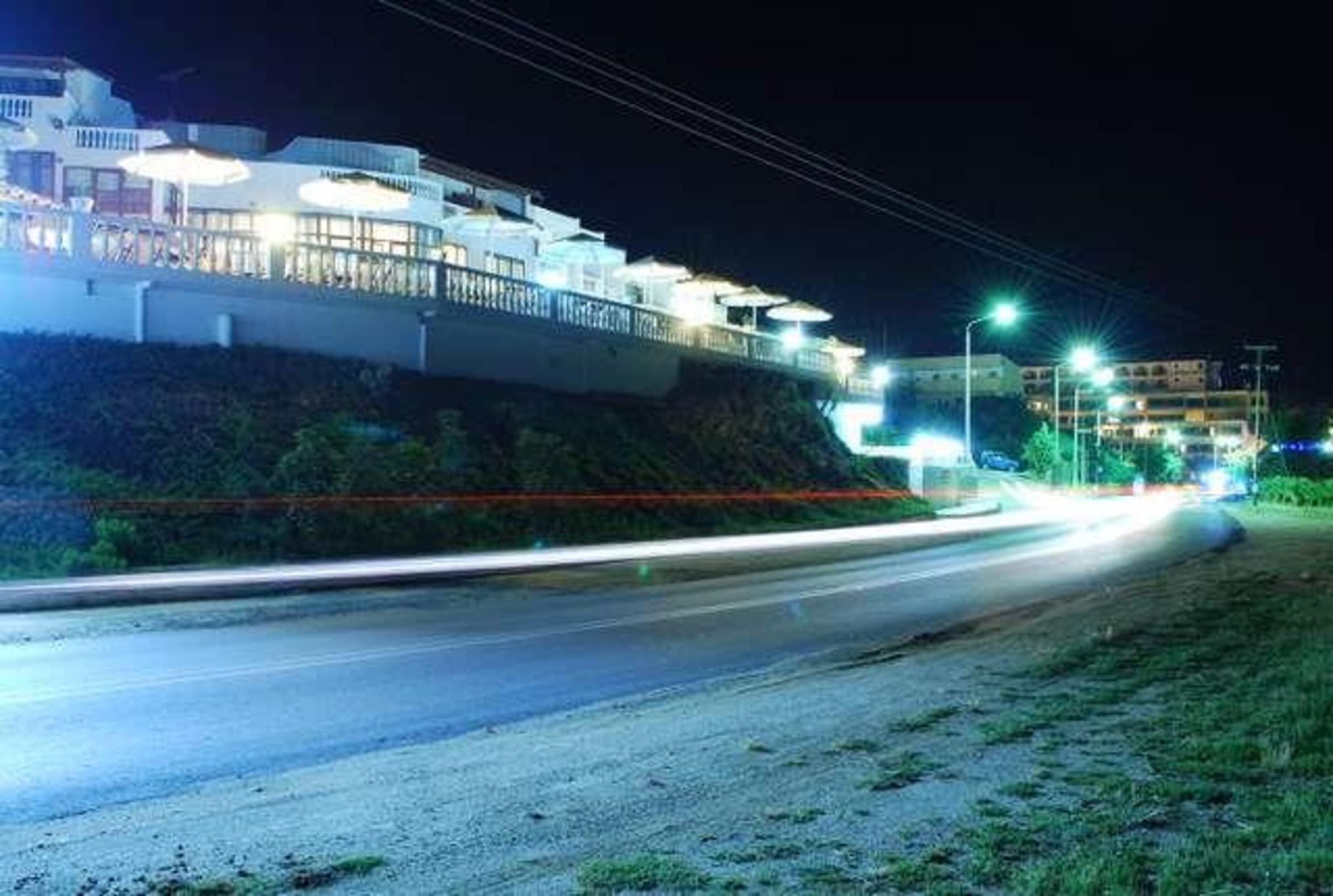 Ulica przebiegająca pod Akti ale na szczęście mało ruchliwa w maju.