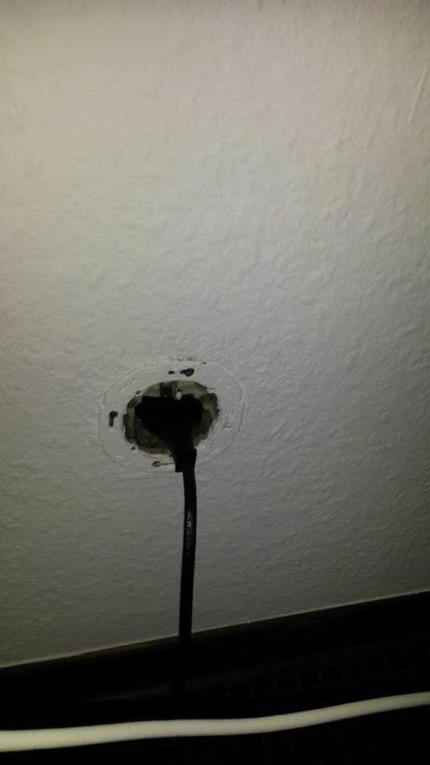 Steckdose von TV- fehlende Abdeckung . Lebensgefahr