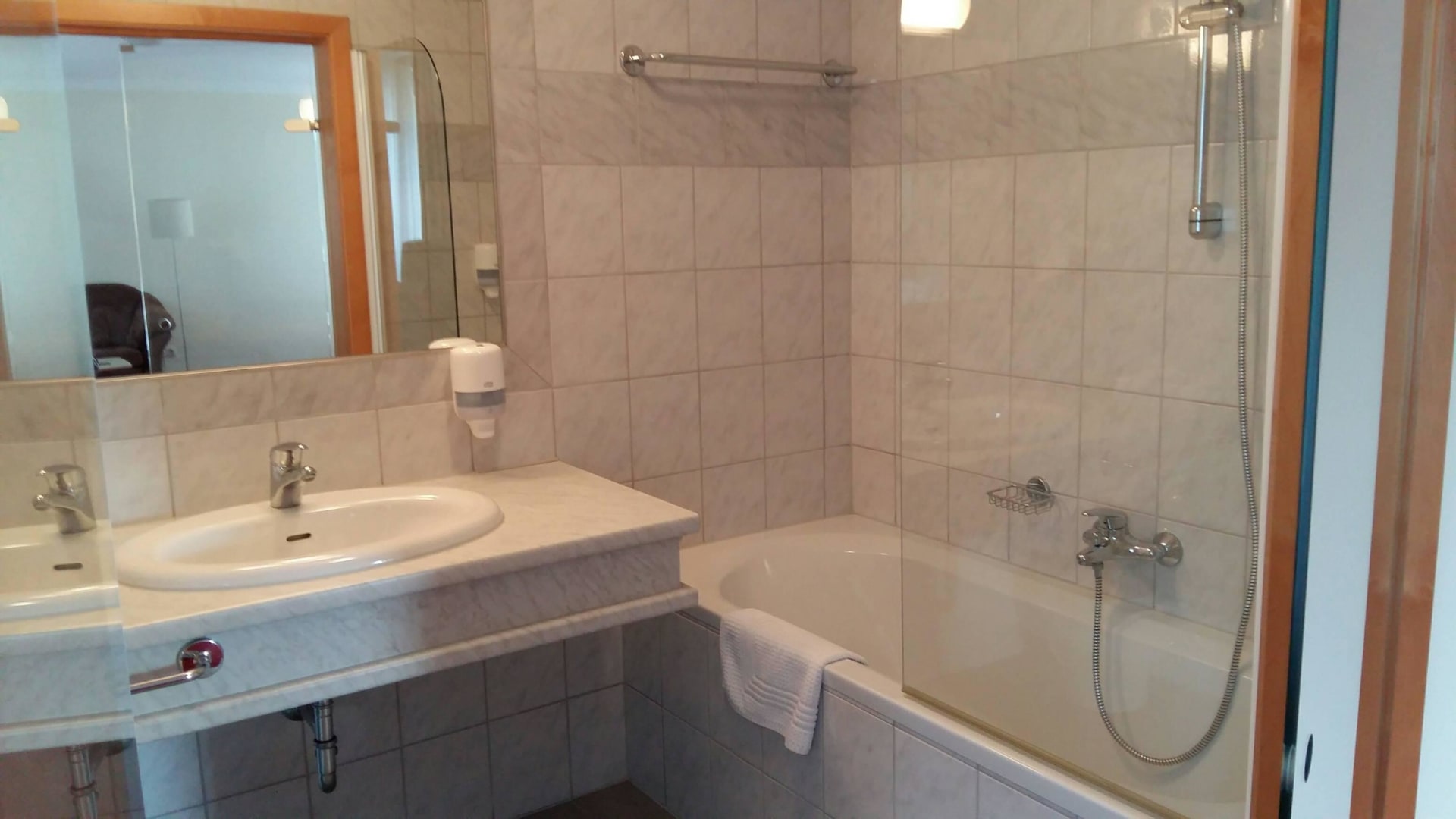 Bad mit Glastüren ohne Milchglasstreifen!