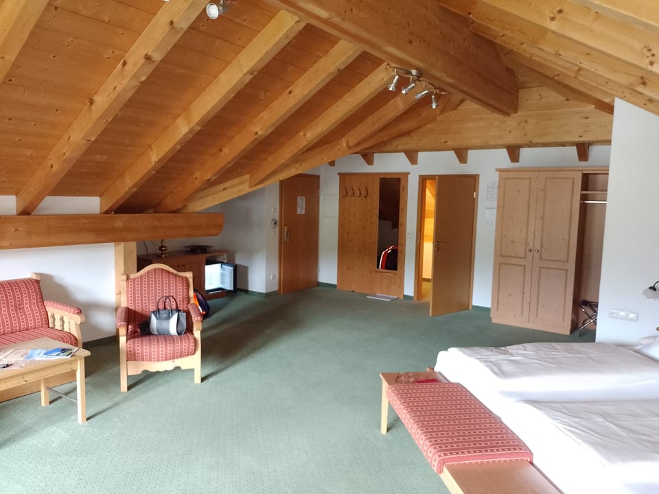 Zimmer mit Sitzecke und Kühlschrank