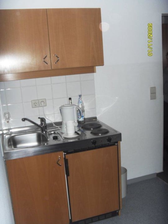 Kleine Küchennische im Zimmer mit Kühlschrank