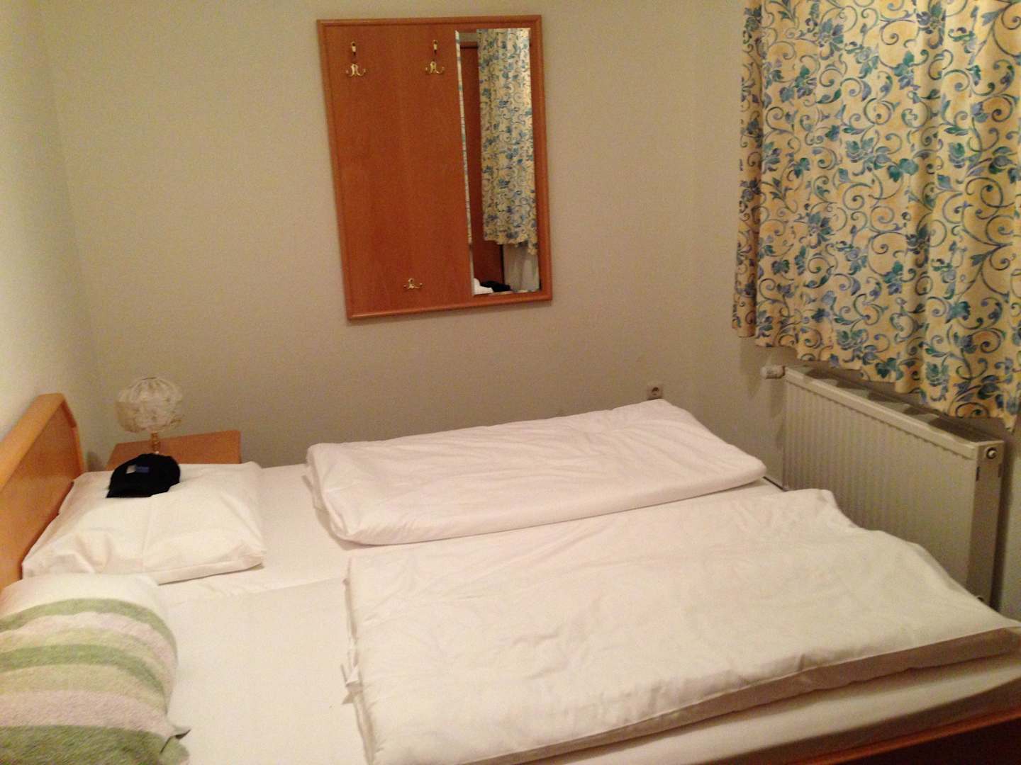 Den Vorhang muss man leider geschlossen halten, da man direkt von aussen hineinsehen kann. Nachts hört man lauten Maschinenlärm der darunter befindlichen Wasseraufbereitung vom Schwimmbad.