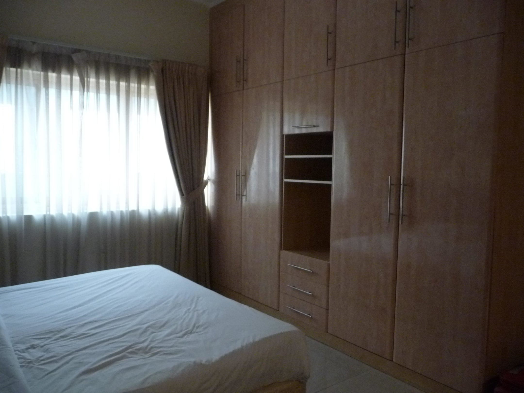 Schlafzimmer mit großer SchrankwandWas wirklich selten ist, dass das Schlafzimmer eine große Schrankwand mit viel Platz für Kleidungbot.