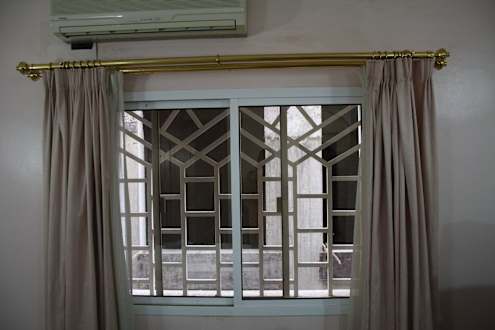 Vergittertes Fenster mit Baustellenblick