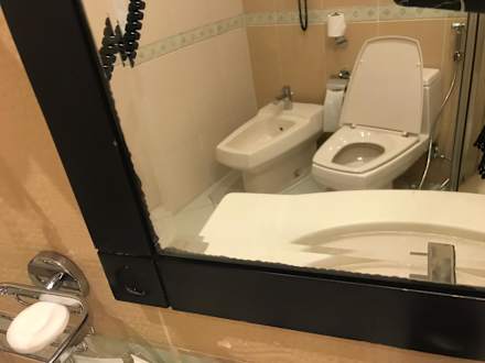 ZimmerDreckiger spiegel, verschmiert von unten bis oben