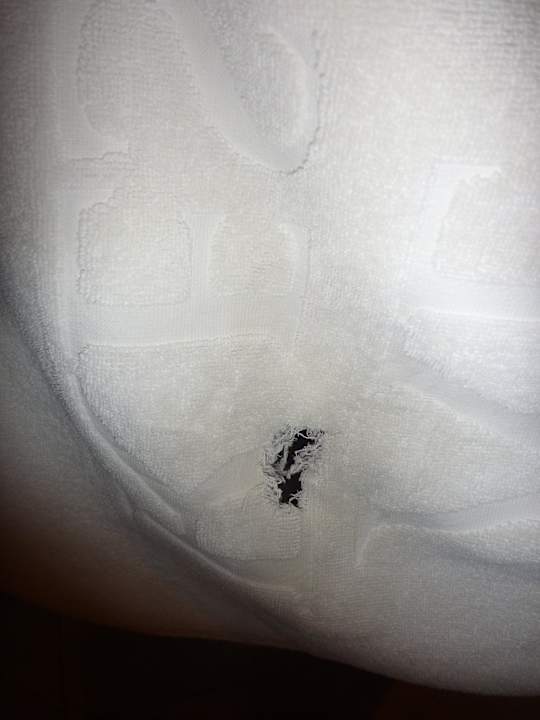 Badetücher in Zimmer 7404In so einem Zustand bekamen wir unsere Badetücher in unserem Bad im Zimmer 7404