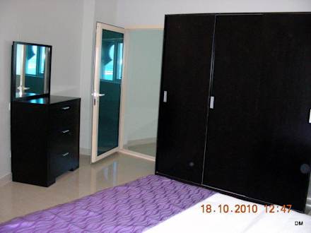 SchlafzimmerMit 3 Türer Schrank, zu wenig Büglen, tragbarem Safe. schöner Kommode und Tür zum geschlossenem Balkon