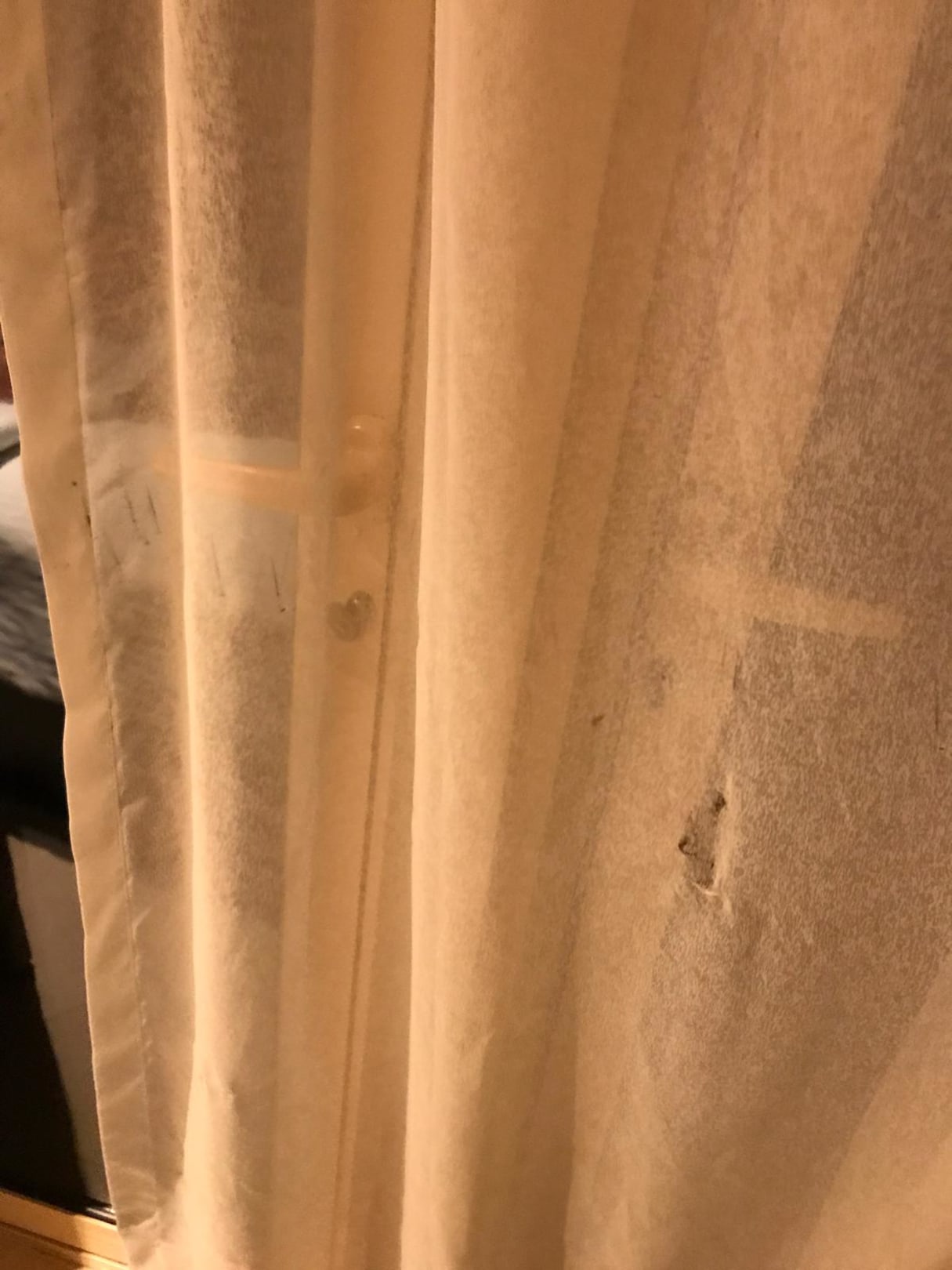 ZimmerDreckige und kaputte Vorhänge