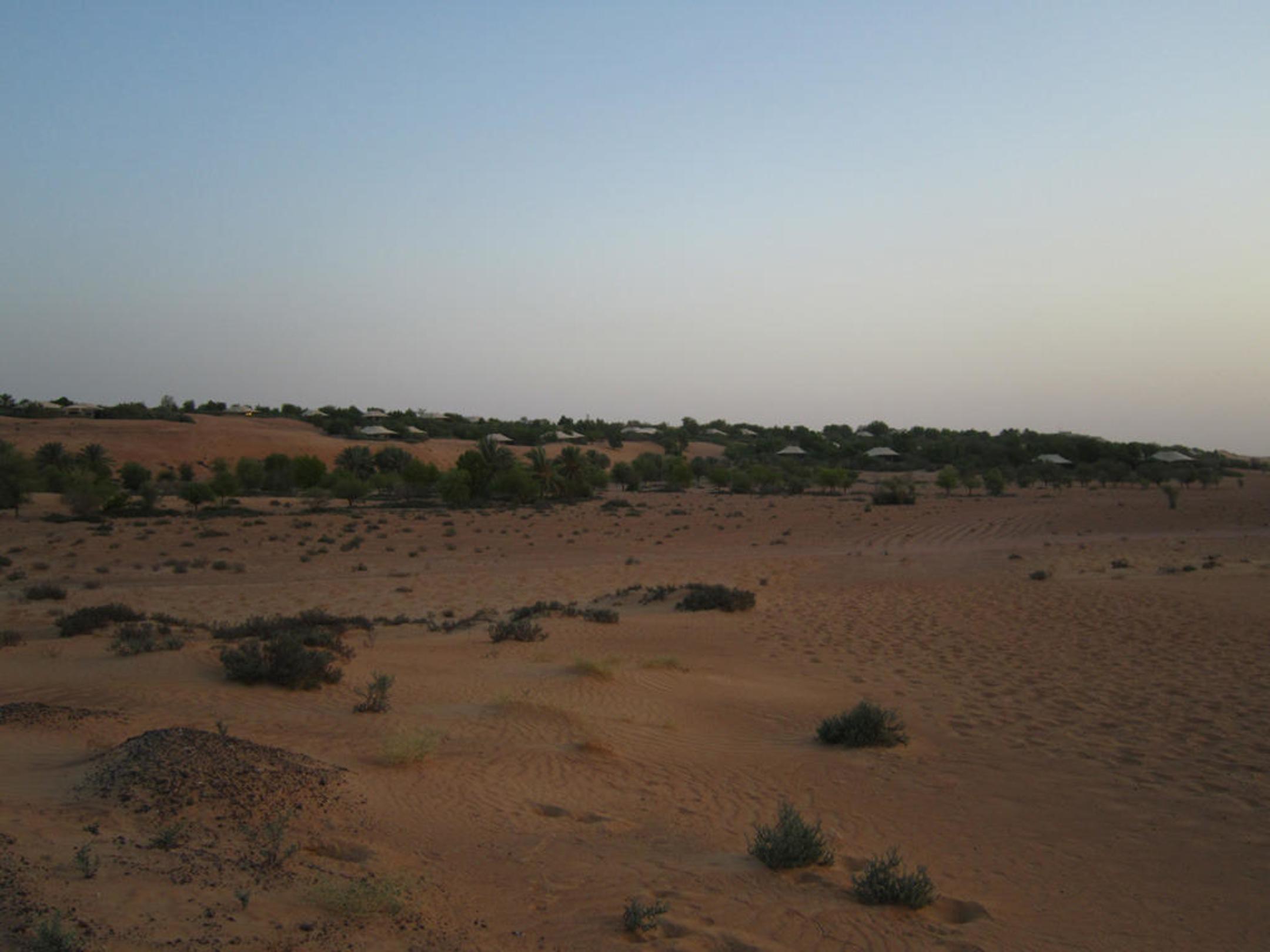Al Maha Desert Resort & Spa, Blick von der Zufahrtsstrasse