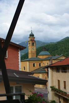 Blick vom Zimmer auf die Kirche von Baselga