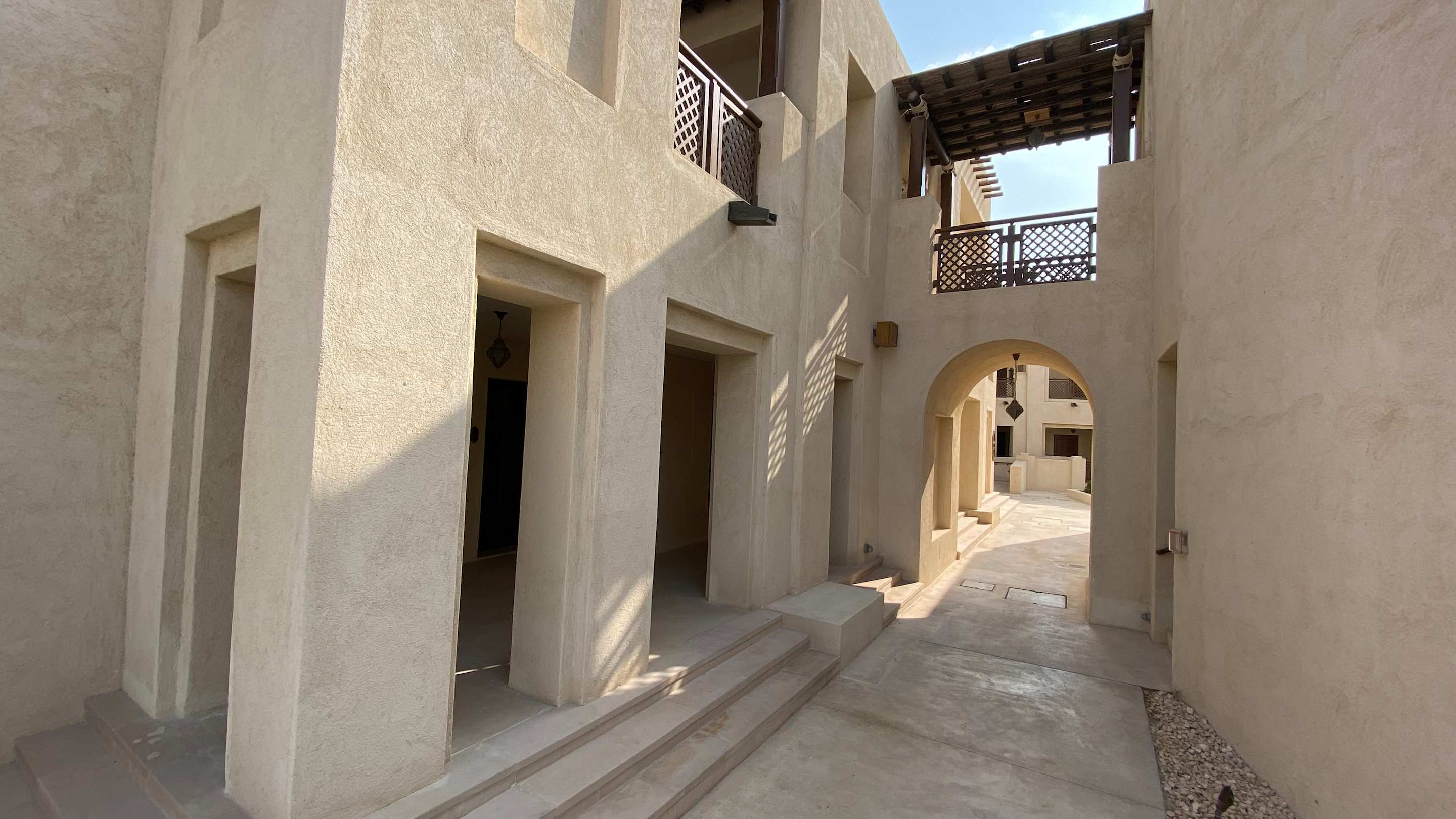 Schattige Gänge und Gassen verbinden die einzelnen Wohnblocks.