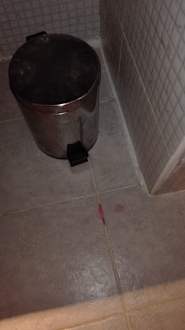 Boden mit Blut verdreckt. So haben wir das zimmer bekommen