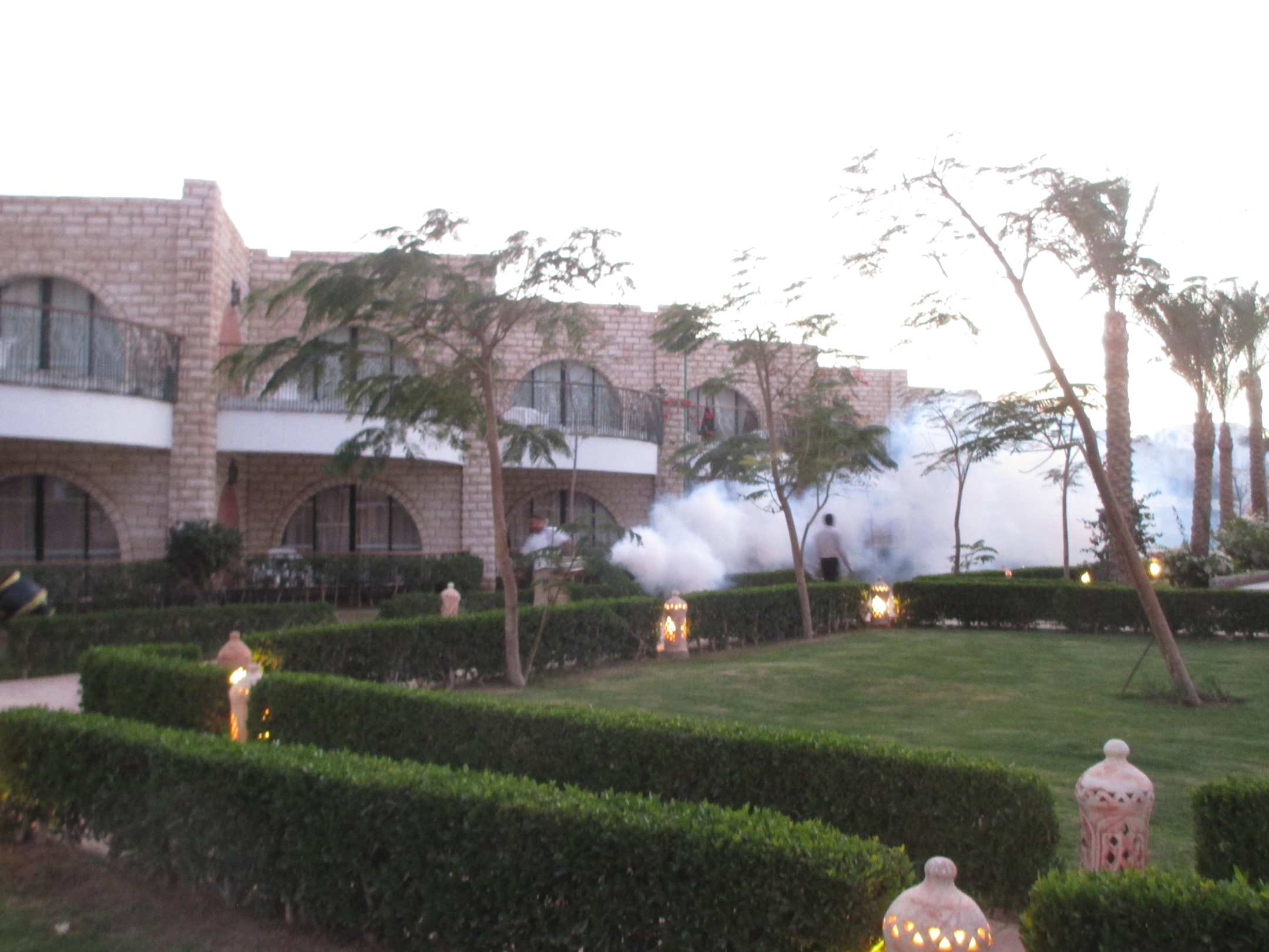 Ausblick von meinem Bungalow. extrem Lauter störender Dieselmotor mit stinkenden Petrolium Nebel - gegen Moskitus..Weckruf um 6.00 Uhr morgens und Abends um 18.00 Uhr.