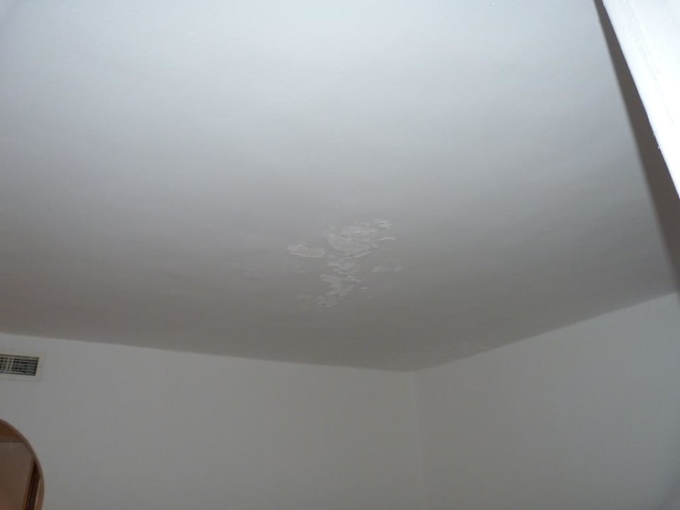 Schaden an der Decke des Zimmers, Putz bröckelt ab