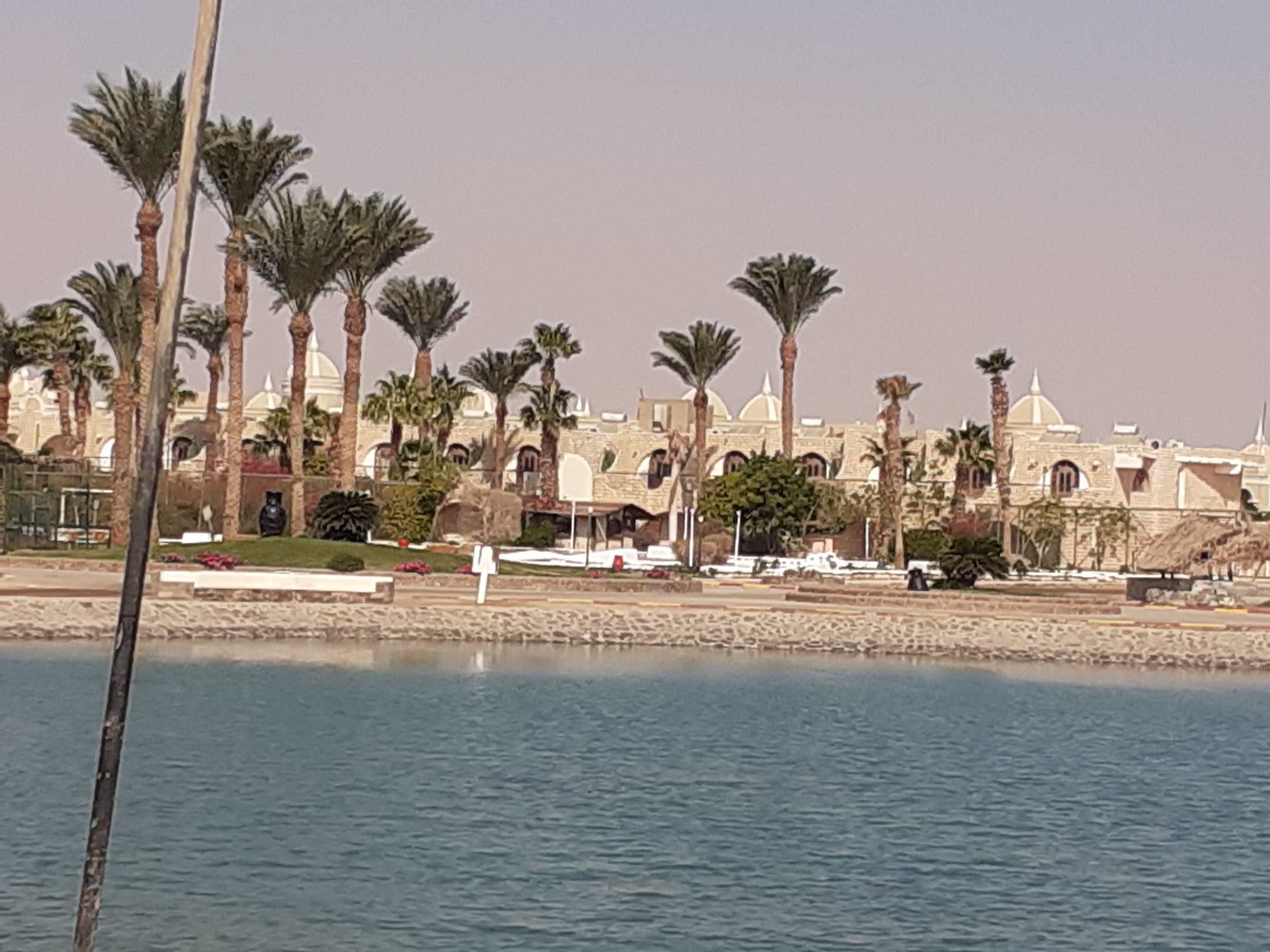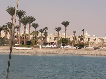 Eine der zwei Lagunen vom Jasmine und im Hintergrund die Kuppeln sind das neue Hotel von der Chefin. (Ali Baba, Aladdin u. Jasmine Village)