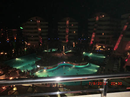 Pool am Abend aus dem Balkon