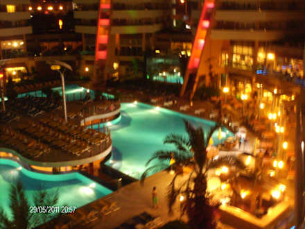 Blick auf den Poolvon unserem Balkon bei Nacht