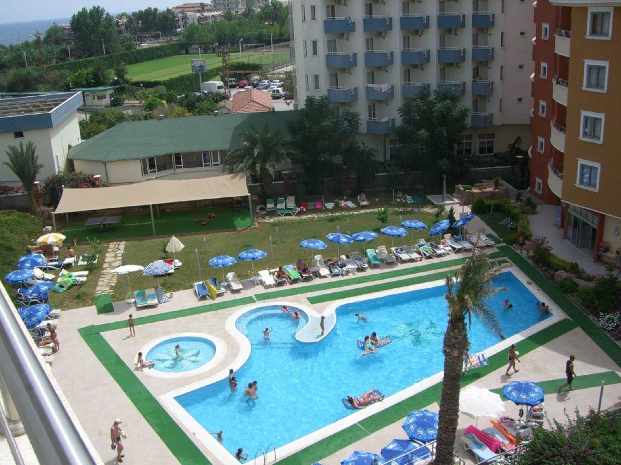 Blick vom Zimmer auf den kleinen Pool