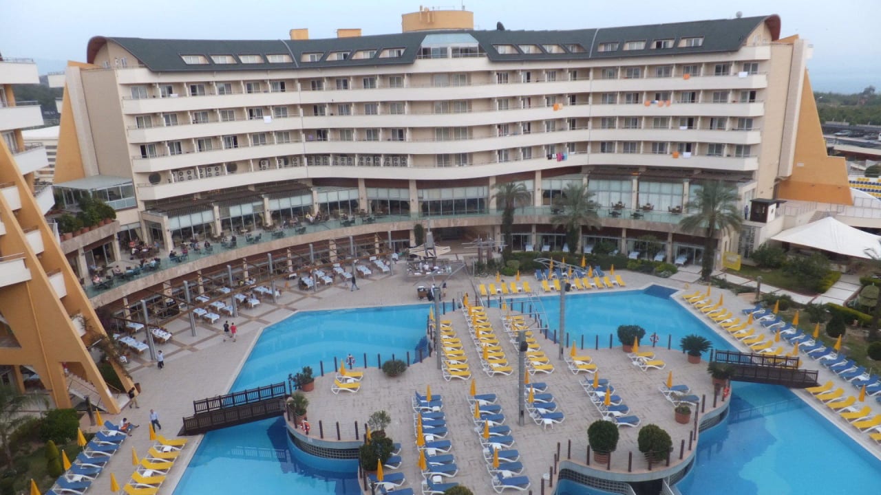 Pool Restaurand und Hotel am Tag