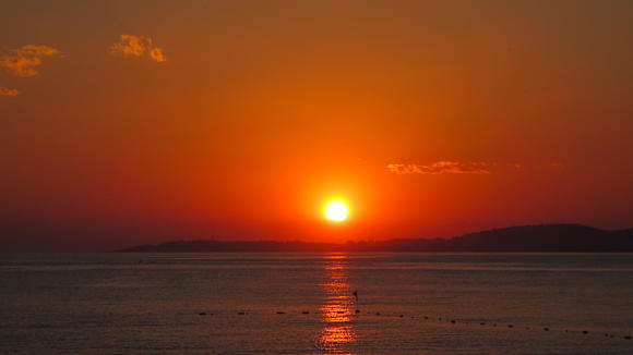 Blick auf den Sonnenuntergang vom Hotelstrand